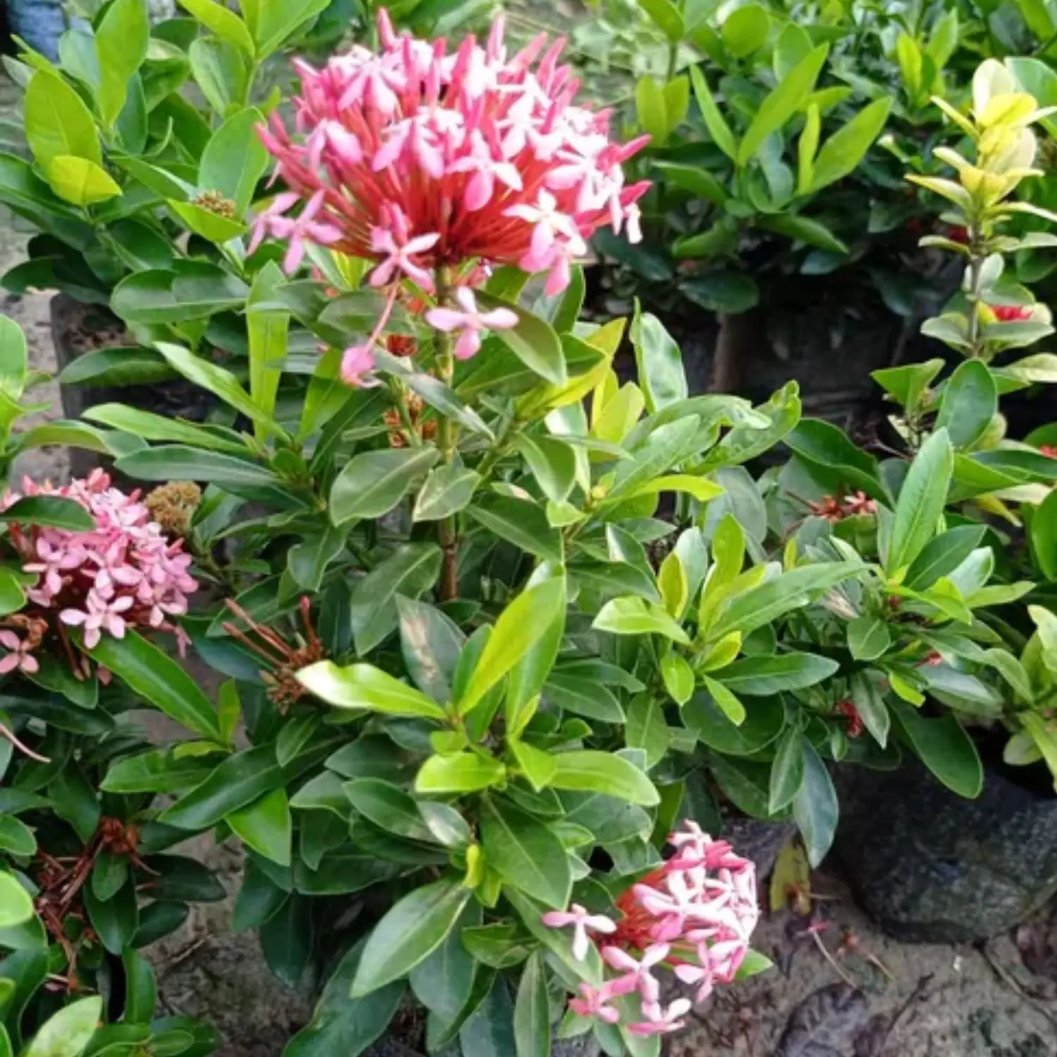The scientific name of Rangan/Ixora Flower Plant (Pink) varies depending on the species, but it belongs to a family of plants admired for their aesthetic and medicinal properties.