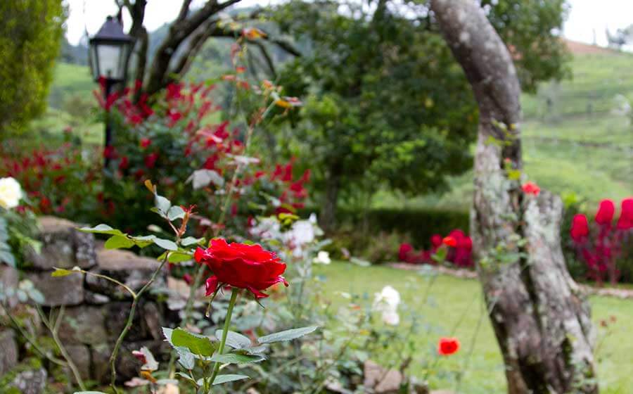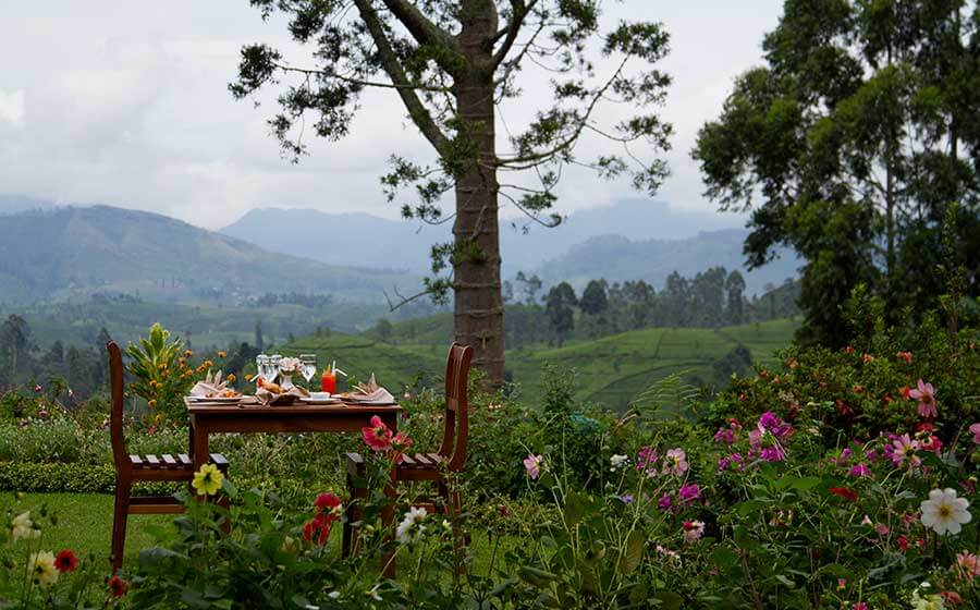The white garden chairs on the immaculately maintained lawn, overlooking the expanse of the tea estate running into the mist covered mountains, sets place to sip Ceylon tea in pleasant company. One can read a book on the wooden chair, set romantically under a secluded canopy, with the sounds of chirping birds and the stream nearby. From the terraced garden, the fishing pond or through the bay windows of the mansion, the much revered Adam’s Peak can be viewed on a day with a clear blue sky. While as the sun sets beyond the mountain ranges, the sky comes alive with different strokes of warm colour.
