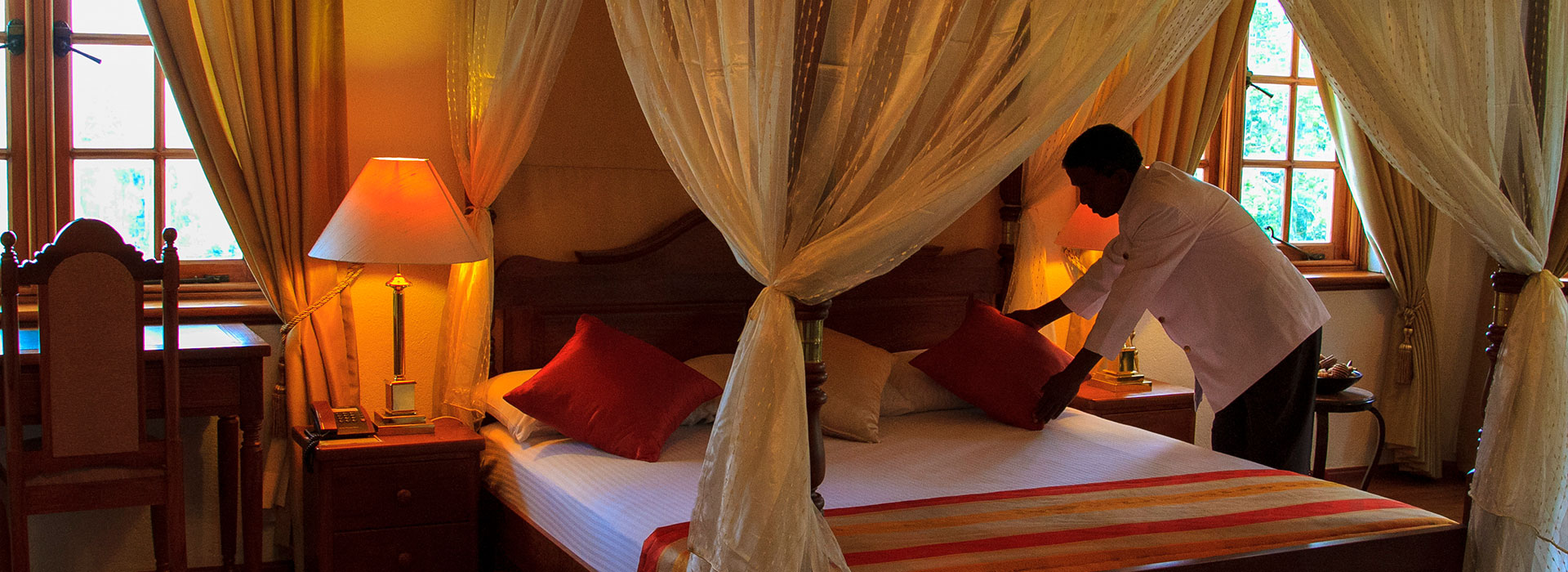 The mansion brings to life the gracious living style of the past colonial era. With all modern amenities made available together with the essentials of luxury accommodation, the Governor’s Mansion Luxury Tea Estate Boutique Hotel offers tastefully designed 11 deluxe rooms. 3 suites, 7 deluxe – single and double, medium, large and very large sizes including conjoined living space for family holiday needs.