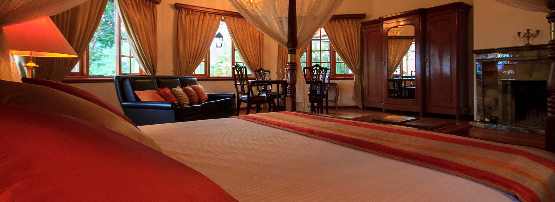 One can strike up good conversation with other guests in the lounge or living room where comfortable sofas, entertainment in the form of music center, board games and magnificent billiards table, piano, guitar,karaoke and satellite TV are available to keep guests of all ages entertained. Click on the following links to read more about rooms and Governor’s Mansion Luxury Tea Estate Boutique Hotel.
