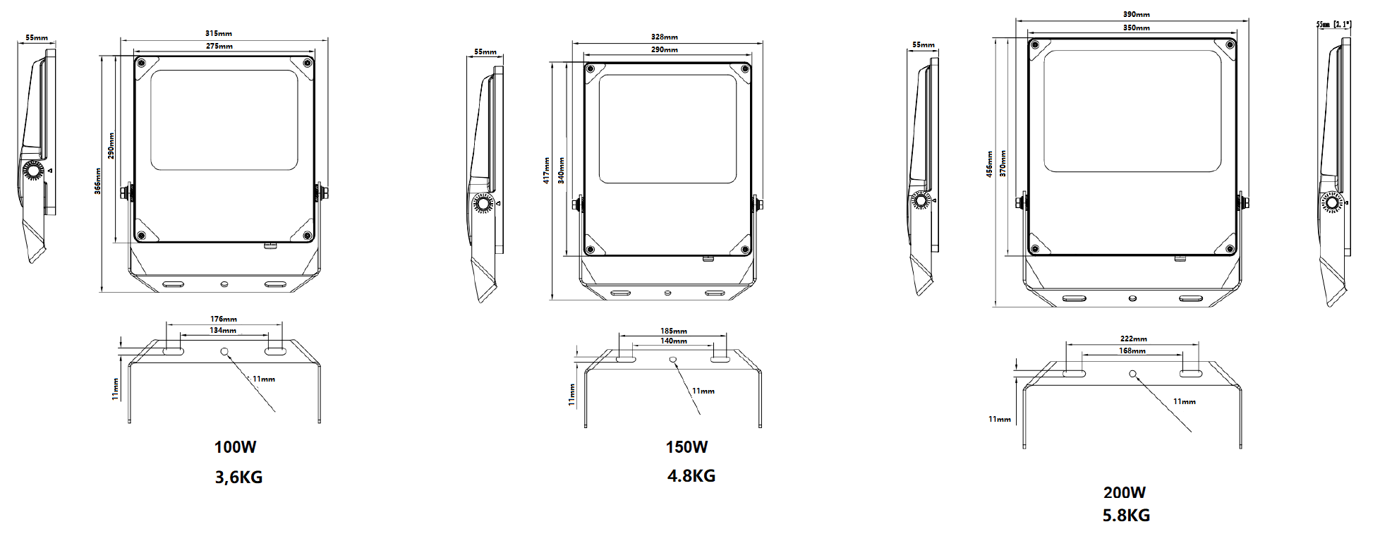Wattage: 50W / 75W / 100W / 150W / 200W