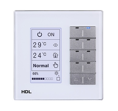 Modern Series DLP Smart Panel is a multi-function control panel for home automation. With 8 control buttons and 2 page buttons, the panel has 4 general pages for lighting, curtains, etc. Dedicated pages are assigned for air conditioning, floor heating and background music playing. According to customers’ preferences, icons on LCD display can be changed through programming software.