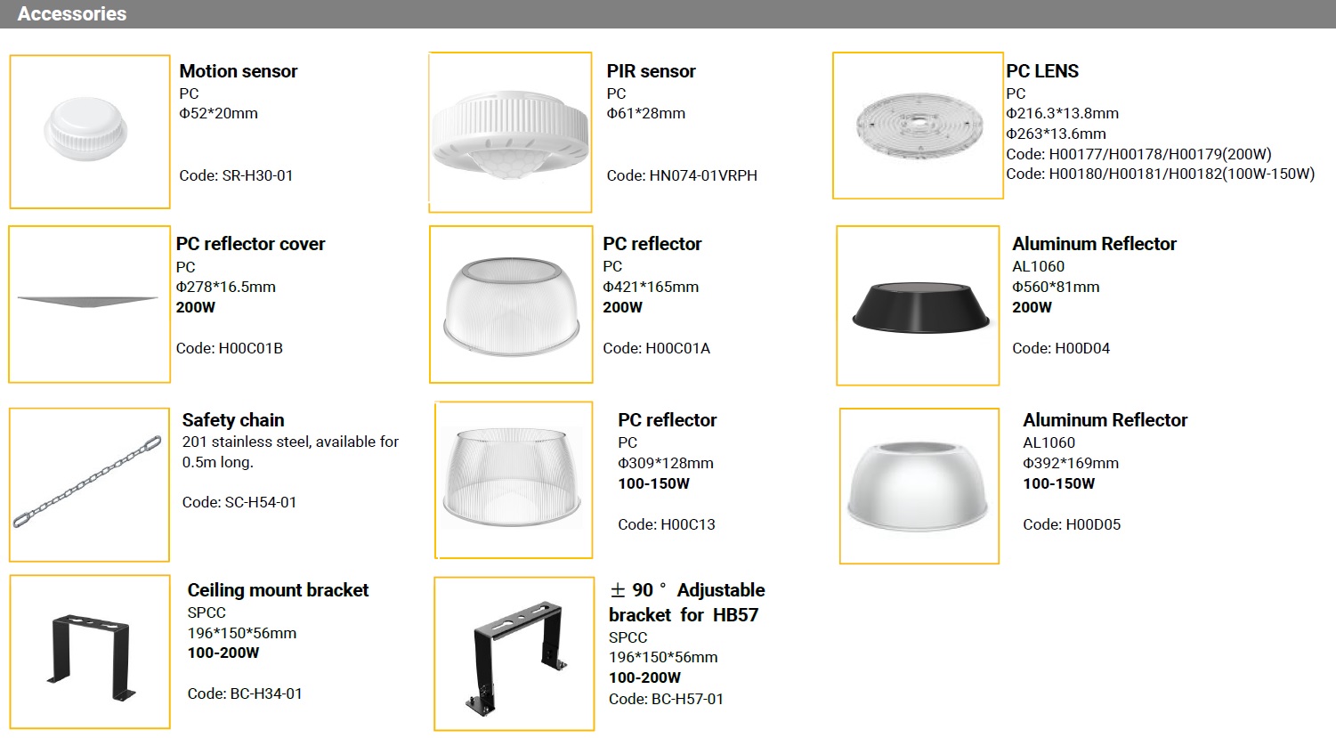 | HB57 210lmW Series | HB57 100W 210lmW, HB57 120W 210lmW, HB57 150W 210lmW, HB57 200W 210lmW |