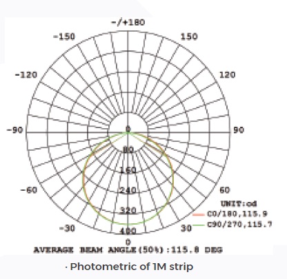 • CCT: 2700K(880lm/m) / 3000K(885lm/m) / 4000K(925lm/m) / 6500K(860lm/m)