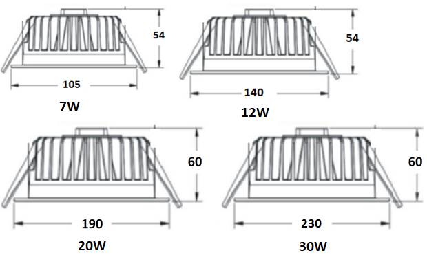 Wattage: 7W / 12W / 15W / 18W / 20W