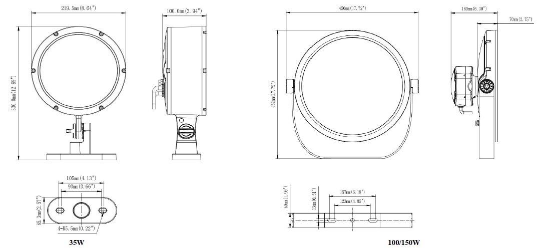 • Wattage range from 35W to 150W
