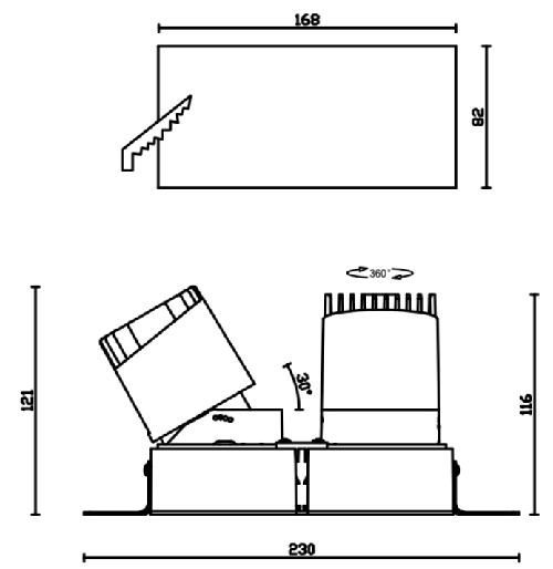 • Trimless gimbal double head format downlight from Lite Unite setting an advanced and innovative thermal balance system through passive dissipation with a stable colour temperature of 4000º K (neutral white) optimised to be used as general & accent lighting for commercial areas shop-windows and different indoor spaces. Designed for ceiling-recessed installation. Luminaire body built in die-cast aluminium finished in white. Luminaire built-in a primary reflector made of high purity aluminium plus an antiglare secondary reflector. with an angle beam of 38º. Luminaire sets LED source with CRI higher than 85 %. The luminaire is UGR<19. The fixture has an efficiency of 90 Lm/W The average life for the luminaire is 50000 h (stabilised at a minimum flux of 70 % from the original)