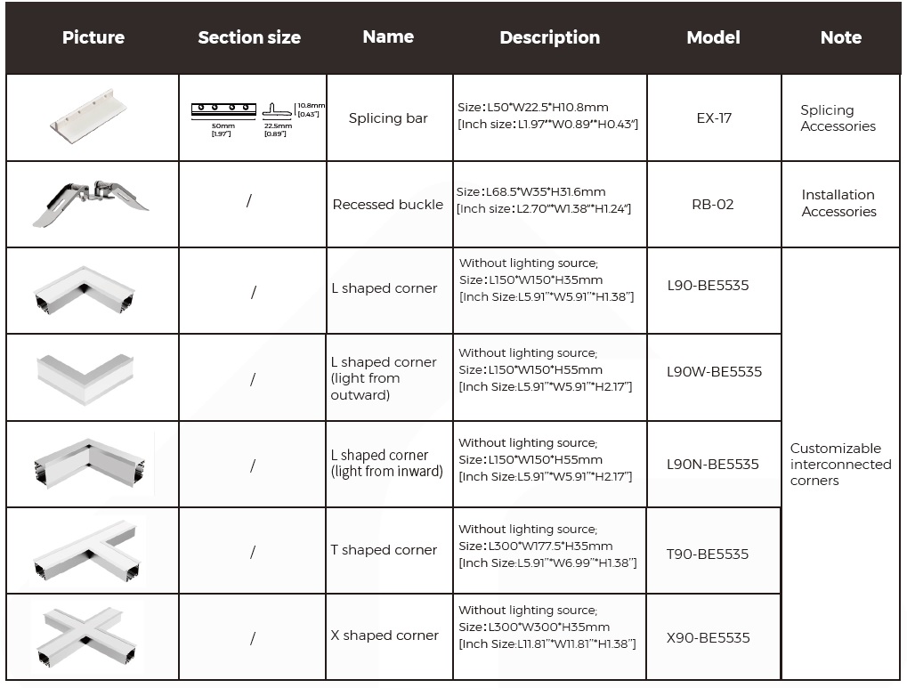 | Recess Linear Series | LE5535 HE 19W 125lm/W 1200mm, LE5535 19W 100lm/W 1200mm, LE5535 UGR 19W 90lm/W 1200mm, LE5535 HE 27W 125lm/W 1800mm, LE5535 27W 100lm/W 1800mm, LE5535 UGR 27W 90lm/W 1800mm |