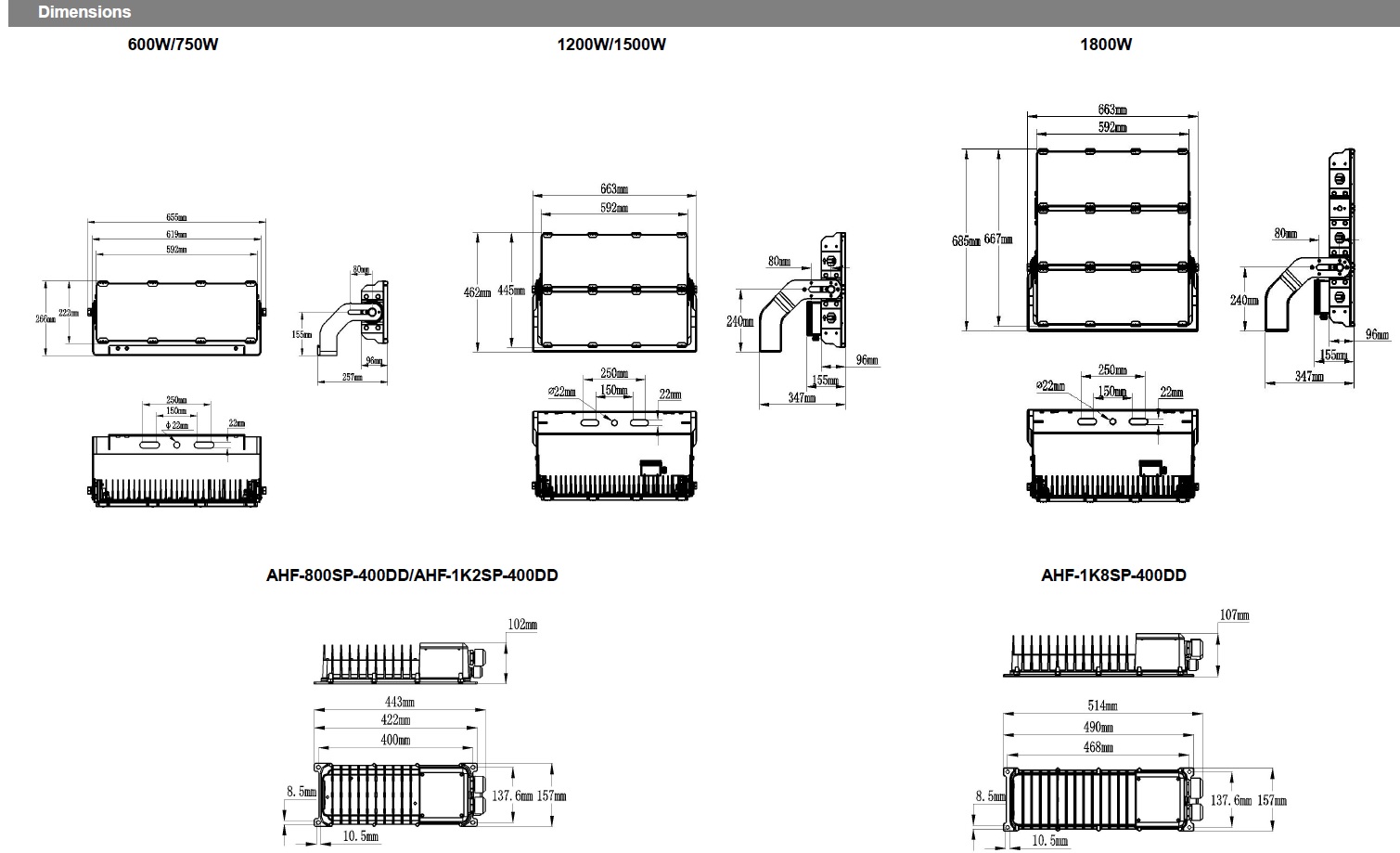 • Super high efficacy up to 180lm/w, lumen packages up to 320,000lm, which can reduce the number of luminaires installed onsite