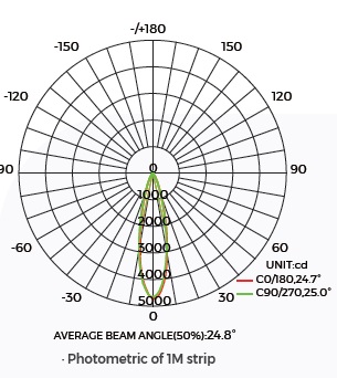 • CCT: 2700K(1250lm/m) / 3000K(1350lm/m) / 3500K(1440lm/m) / 4000K(1440lm/m) / 6500K(1440lm/m)