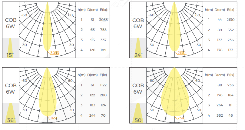 Beam Angle: 15° / 24° / 36° / 50°