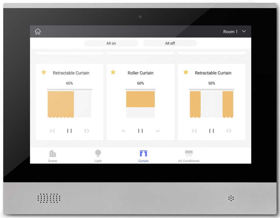 S10 is a touch screen which is specially designed for home and building automation. It adopts a 64 bit 4 core high- performance CPU and equipped with a 800×1280 high-definition IPS display and multi-point capacitive touch screen. This touch screen also has a variety of physical interface extensions to connect to other systems, such as, dry contact inputs to connect to various types of security sensors, dry contact outputs to drive magnetic valve or curtain, KNX interface to connect to KNX home and building automation control system, Buspro interface to connect to HDL Buspro system to control villa automation applications, temperature sensor to monitor room temperature, etc. The touch screen is with built-in hardware echo cancellation circuit, which can eliminate the echo occurs during two-way audio call process The high-sensitivity MIC and the low-distortion speakers are very good at restoring real sound and very suitable for visual intercom applications. The built-in sensor detects the movement of the body in real time. When human body is close to the touch screen, the app can automatically wake up the screen backlight and provide a very convenient control mode.