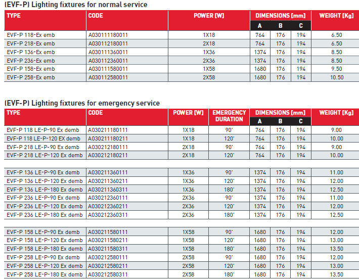 EVF-P 118 ex de, EVF-P 136 ex de, EVF-P 218 ex de, EVF-P 218 LE-P ex de, EVF-P 236 ex de, EVF-P 236 LE-P ex de