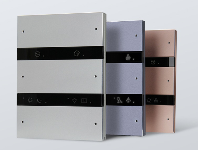 Granite is a multi-function panel with metal push buttons, which supports a variety of key control types. It is embedded with RGB light for each button. Any color and brightness of label backlight and button indicator can be set in HDL Buspro Setup Tool 2.